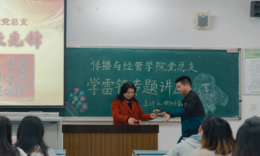 2019年4月3日晚8:00,我院于A2教学楼403举办了传播与经管学院党总支“做雷锋、做先锋”学雷锋主题讲座。主讲人为欧阳本泰,讲座主持人为李雄伟,副书记徐瑗蔚,辅导员王睿、匡玉玲、徐如峥出席了此次讲座。