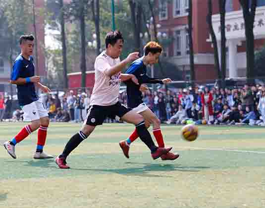 2019年10月30日中午,传播与经管学院和播音主持系的足球赛在我校操场上拉开帷幕。天气晴朗,与之相合的是足球场上球员们高涨的热情。观看此次比赛的还有我院书记欧阳本泰老师,副书记徐瑗蔚,以及杨用、李雄伟和王睿老师 比赛一开始,双方就进行了猛烈的进攻,双方球员打出精妙的配合和有威胁的射门,脚下功夫十分了得。无论是抢球,传踢,都是气势凌厉,双方互不相让进攻,防守,他们有着缜密的队形部署,细腻的脚法;场外的同学们激情洋溢,纵情地为场上的队员们加油叫好,现场气氛十分热烈,场上时时发起高潮,观众连连欢呼叫好。 最终播音主持系以4:2获胜。他们在场上欢呼澎湃,传播与经管学院失望中带有不甘,但是他们也很开心碰到对手,让他们又一次获得了成长。 绿茵球场,青春激扬,足球场在比赛进行中一点点升温,感染在场的每一个人。