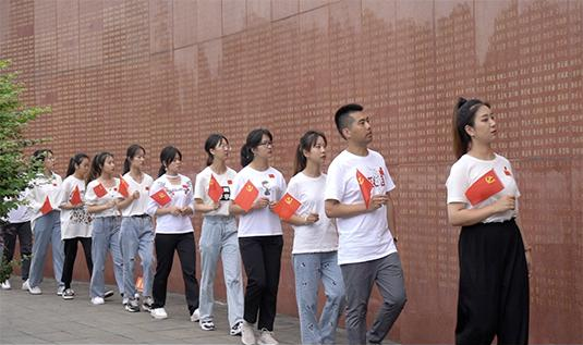 图|入党宣誓重温红歌里的故事,唱响新时代的赞歌。师生代表在红军纪念馆前齐唱《没有共产党就没有新中国》,大家情绪高昂、齐声欢唱,嘹亮雄壮的歌声响彻云霄,用自己昂扬奋进的声音,向党的百岁生日献礼。