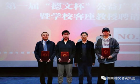 德文集团的合伙人蒲洪泉先生、万象映画的徐畅导演及公司的专家受邀出席了本届“德文杯”公益广告大赛的颁奖仪式。