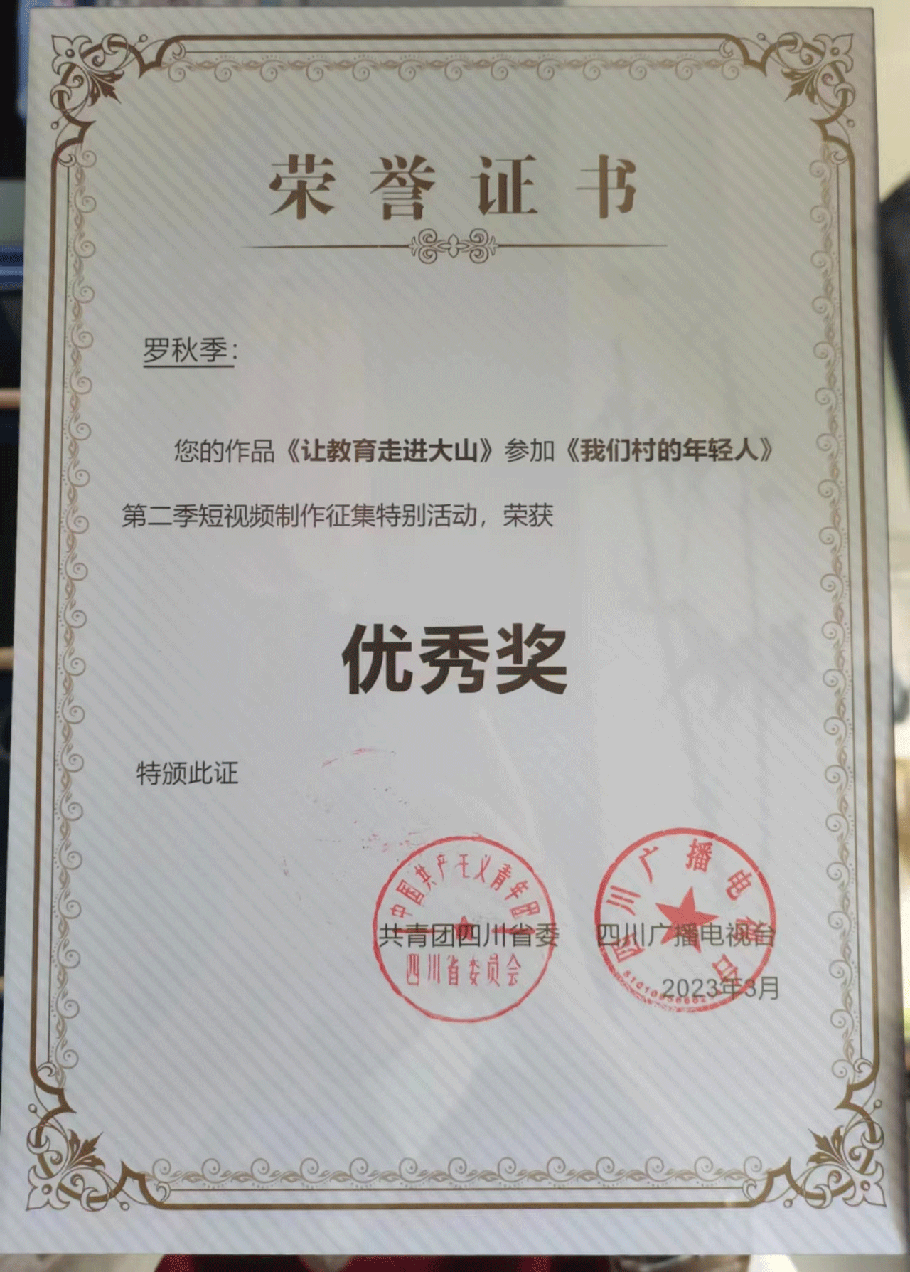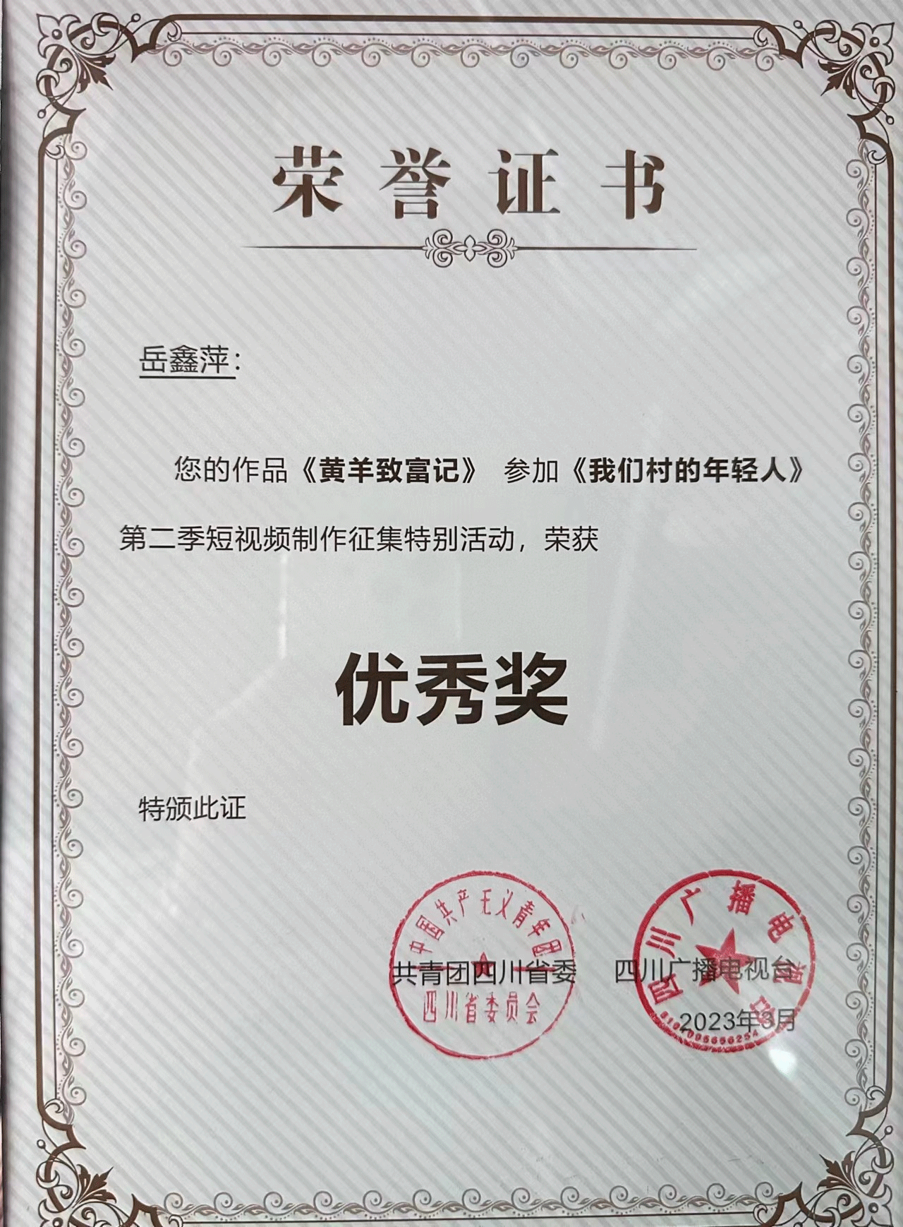 由共青团四川省委、四川广播电视台、四川省青年联合会联合举办的《我们村里的年轻人》第二季视频征集活动圆满结束,3月28日在四川广播电视台举行了颁奖仪式。