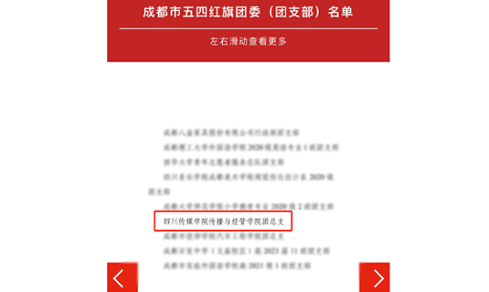 在成都市五四红旗团委(团支部)名单中,四川传媒学院传播与经管学院团总支获评成都市五四红旗团支部。
