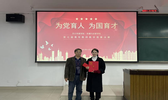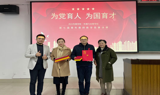 传播与经管学院院长肖建春教授、副院长金佳林副教授在讲课比赛结束的颁奖仪式上讲话,祝贺以上参赛获奖的7位青年才俊,期待来年有更多的青年教师参加讲课比赛。大家一起切磋、一起交流、相互鼓励和成长。预祝这次选拔出来参加四川传媒学院校级讲课竞赛的3位老师们飞得更高,走得更远!