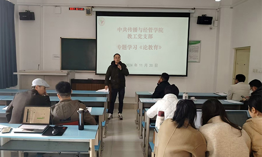 2024年11月20日,传播与经管学院教工党支部召开党员大会,会议集中学习习近平同志《论教育》。会议在教工支部书记赵玉文老师的主持下进行。