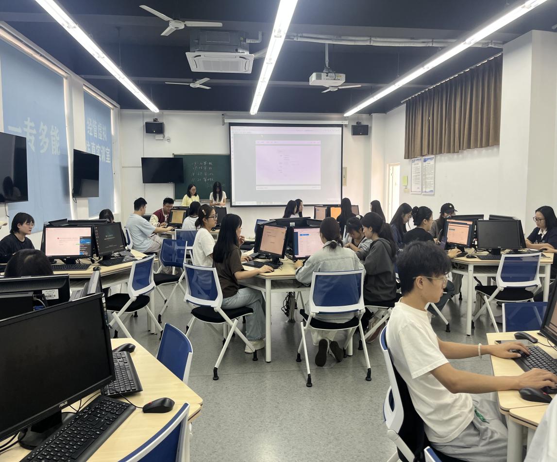 为帮助同学们深入了解赛事规则与操作流程,学院于9月28日中午13:00在A2-310教室举办了赛事宣讲。徐强老师围绕赛事背景、参赛意义、赛程安排、比赛形式及校内选拔机制等内容进行了系统讲解,并回顾了我院历年参赛情况,使同学们对赛事有了更加全面的认识。随后,师生共同前往A2-517实训室进行系统实操演练。在肖芳老师的指导下,同学们完成了账号注册与模拟操作,进一步熟悉了比赛平台的基本逻辑与注意事项。