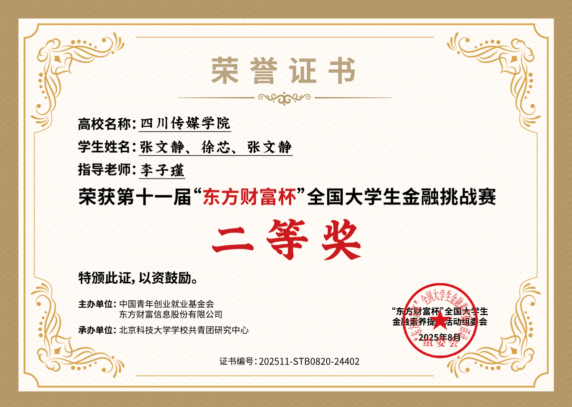 第十一届“东方财富杯”全国大学生金融挑战赛圆满落幕,我院学子凭借扎实的专业功底、敏锐的市场洞察力与默契的团队协作,在激烈角逐中脱颖而出,共斩获2项国家级奖项、12项省级奖项,其中全国一等奖1项、全国二等奖1项,省赛一等奖2项、省赛二等奖7项、省赛三等奖3项,用亮眼成绩彰显了我院经管类专业人才培养的丰硕成果。